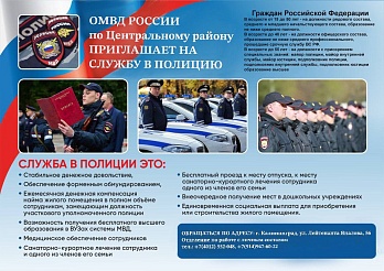 ОМВД России по Центральному району приглашает на службу в полицию!