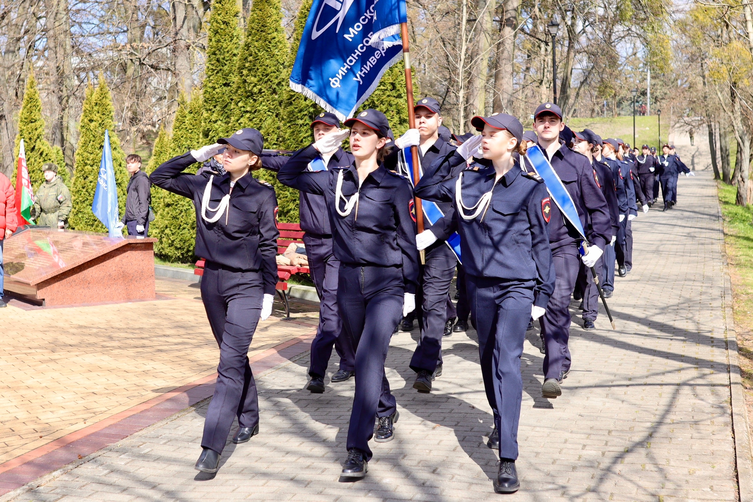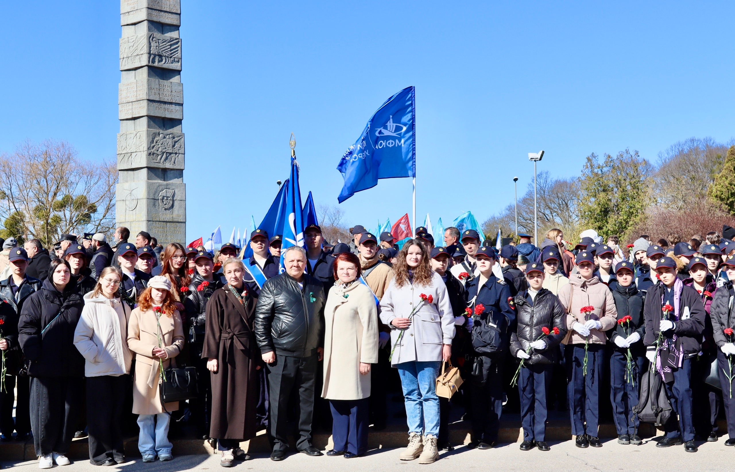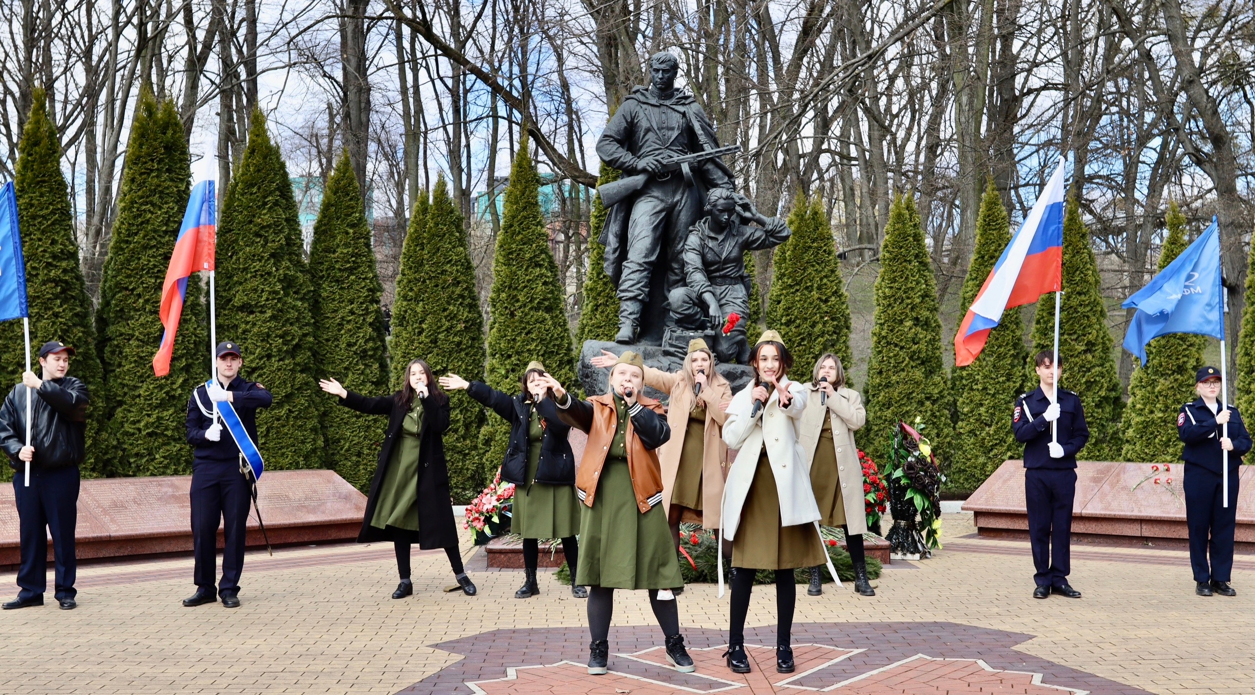 Памятные мероприятия продолжились у памятника «Воинам-разведчикам». Наши студенты вошли в состав парадного расчёта и выступили на праздничном концерте, исполнив бессмертные произведения: «Казаки», «Нам нужна одна Победа», «За Россию» и другие.