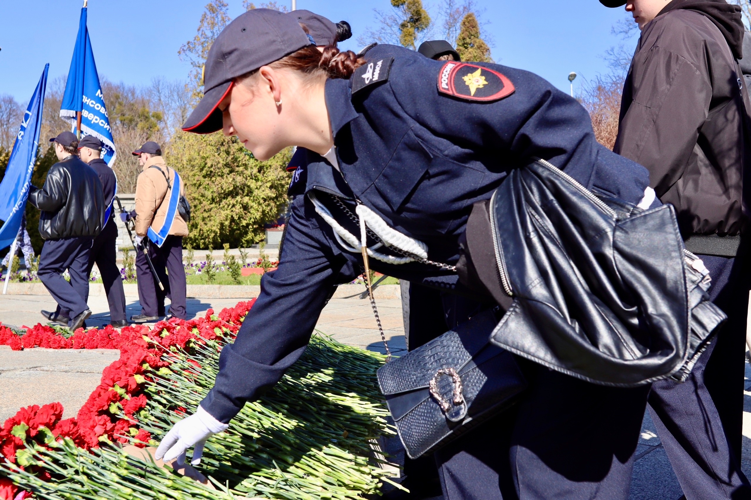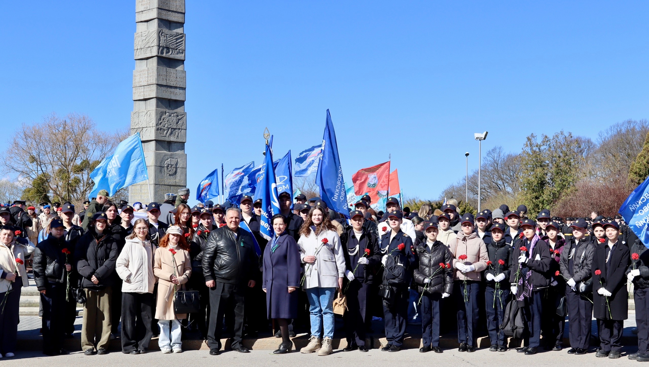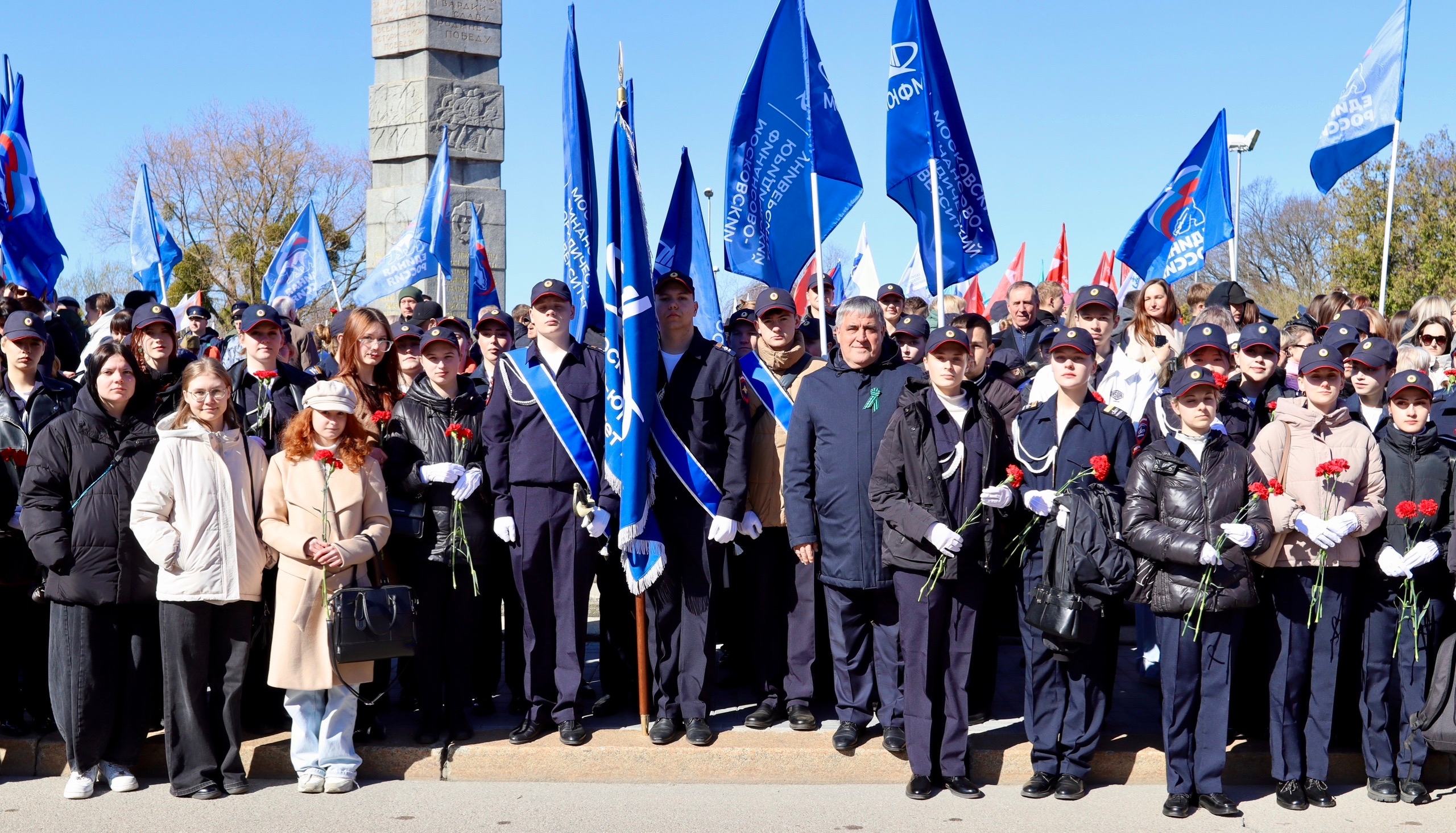 Памятные мероприятия продолжились у памятника «Воинам-разведчикам». Наши студенты вошли в состав парадного расчёта и выступили на праздничном концерте, исполнив бессмертные произведения: «Казаки», «Нам нужна одна Победа», «За Россию» и другие.