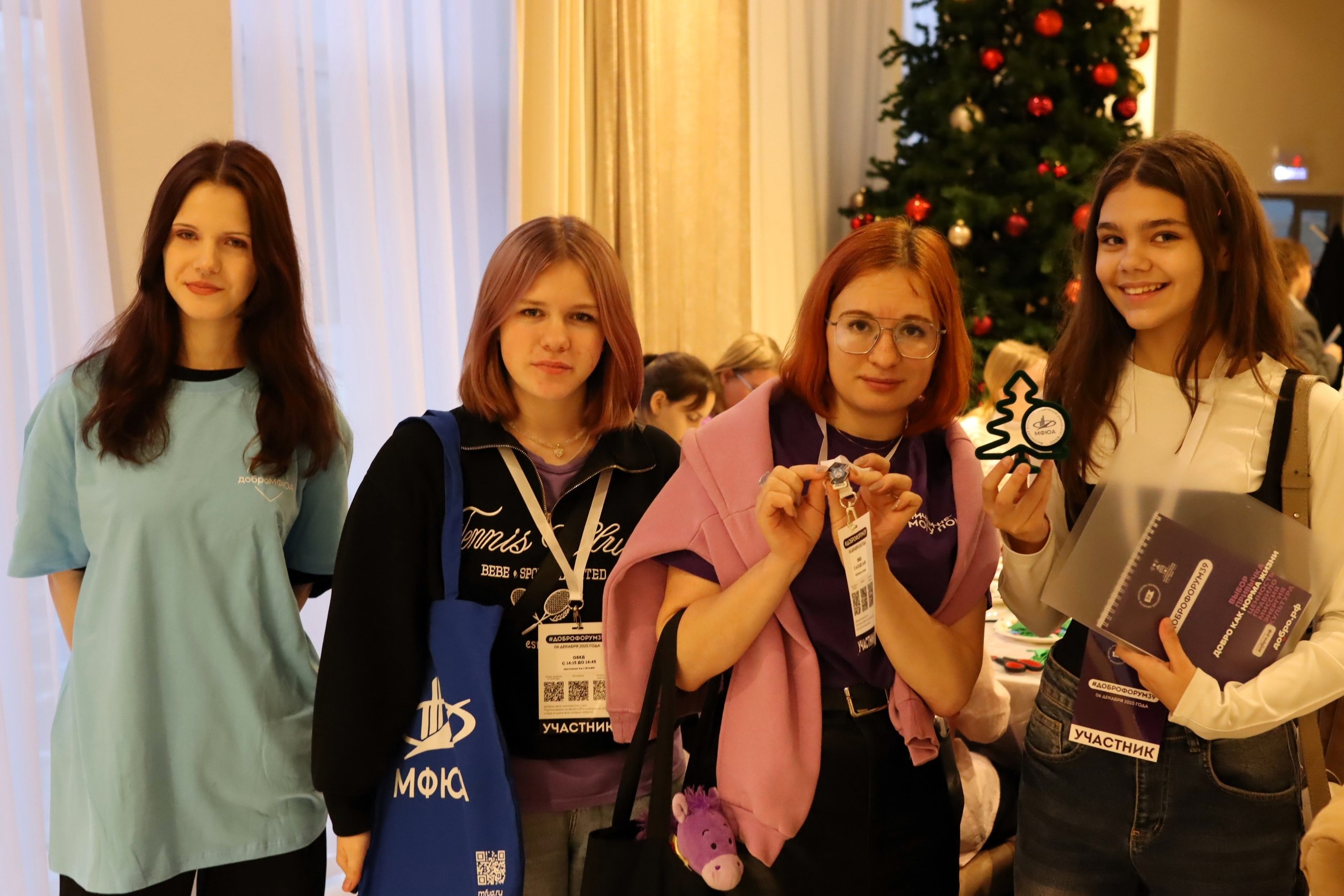 А чтобы добавить новогоднего настроения, волонтеры организовали два розыгрыша призов. Участники могли выиграть фирменную атрибутику МФЮА, а также милые новогодние подарки.
