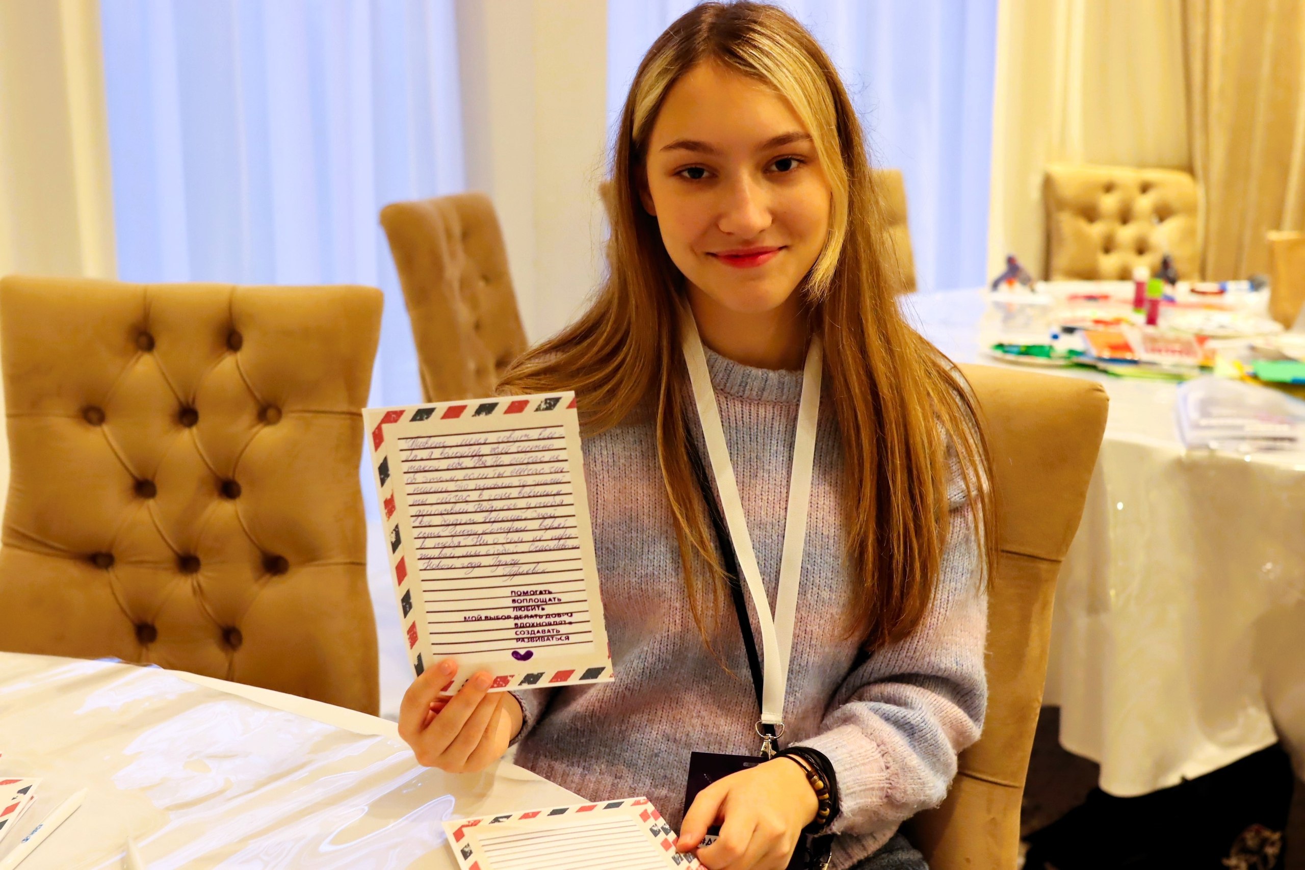 Волонтёрский отряд «ДоброМФЮА» на Доброфоруме провёл тёплый мастер-класс по написанию писем солдатам. Специально для участия были подготовлены фирменные бланки с символикой университета, чтобы каждое письмо получалось по-настоящему особенным и личным.