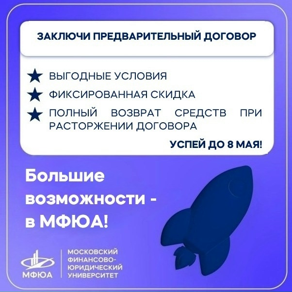 Важно: Предварительный договор гарантирует скидку, но не зачисление. Зачисление происходит по конкурсу в пределах установленных мест.